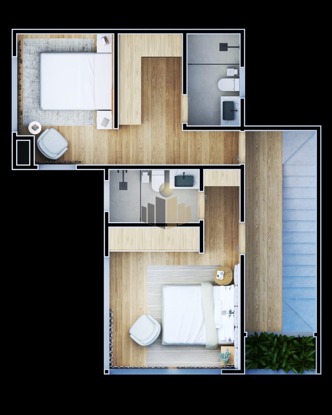 2 Dormitórios, sendo 2 suítes